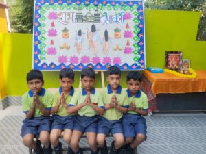 Diwali — the festival of lights, joy, and togetherness — holds a special place in every Indian heart. At Sanskaar Bharti Public School, this festival is celebrated not just as a tradition, but as a way to spread happiness, share knowledge, and strengthen the bonds of unity and goodness. The five days of Diwali bring with them a beautiful blend of devotion, culture, and fun-filled learning for our students.